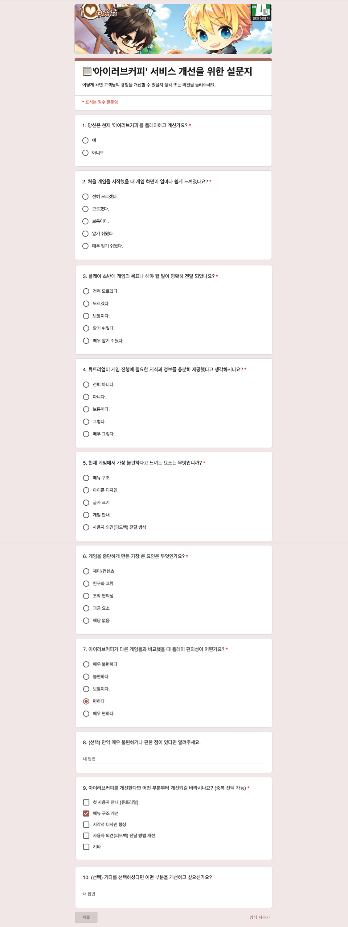📋'아이러브커피' 서비스 개선을 위한 설문지